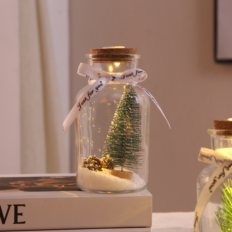 Custom 3D Figure Christmas Glass Wish Bottle Personalized Mini Figure Night Light Ornament with Pine Cone Scene Unique Christmas Gift