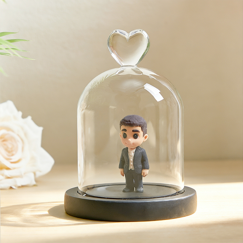 Custom 3D Figurine Couple From Your Photo with Heart Glass Dome Personalized Romantic Keepsake Gift for Anniversary Wedding Valentine